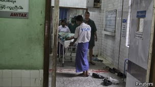 က်န္းမာေရးဘတ္ဂ်က္ တိုးေသာ္လည္းထိေရာက္သည့္ ေစာင့္ေရွာက္မႈ မရေသး Posted: 21 Oct 2013 03:12 AM PDT အစိုးရသစ္လက္ထက္ ႏွစ္ႏွစ္ခြဲကာလအတြင္း က်န္းမာေရးေစာင့္ေရွာက္မႈ အသံုးစရိတ္ ခုႏွစ္ဆ တိုးျမႇင့္ေပးထားေသာ္လည္း ယခုတိုင္ ထိေရာက္သည့္ က်န္းမာေရး ေစာင့္ေရွာက္မႈ မရရွိေသးေၾကာင္း ေဆးပညာရွင္အသိုင္း အ၀ိုင္း၏ ေျပာၾကားခ်က္အရ သိရသည္။ ထိေရာက္သည့္ က်န္းမာေရးေစာင့္ေရွာက္မႈ ရရွိ္ရန္ ျပည္သူ႔က်န္းမာေရး အာမခံစနစ္ လိုအပ္ၿပီး ျမန္မာႏိုင္ငံတြင္ ယင္းစနစ္ကို ယခုထိတိုင္ အေကာင္အထည္ေဖာ္ ေဆာင္ရြက္ႏိုင္ျခင္း မရွိေသးေၾကာင္း က်န္းမာေရးဝန္ႀကီးဌာနမွ ဒုတိယ ညႊန္ၾကားေရး မွဴးတစ္ဦးက ေျပာၾကားသည္။ ---- |