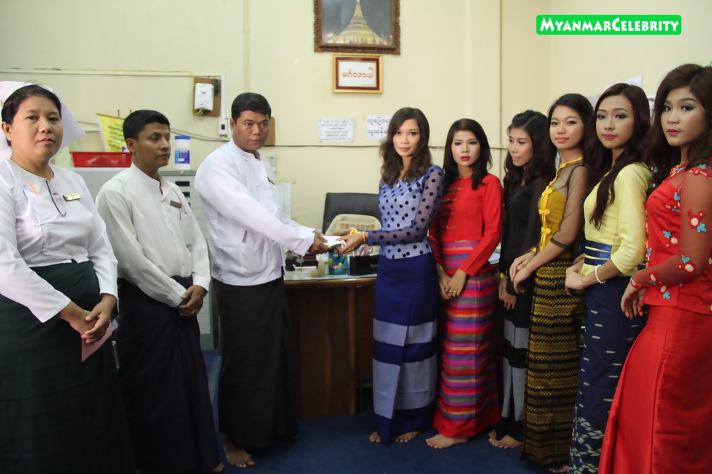 Miss Golden Land Bago 2016 Finalists visited Bago General Hospital and Tha Pyay Gone Elderly Center on June 16, 2016 as a social activities trip. Top (16) Finalists of Miss Golden Land Bago donated food to patients at the hospital. |